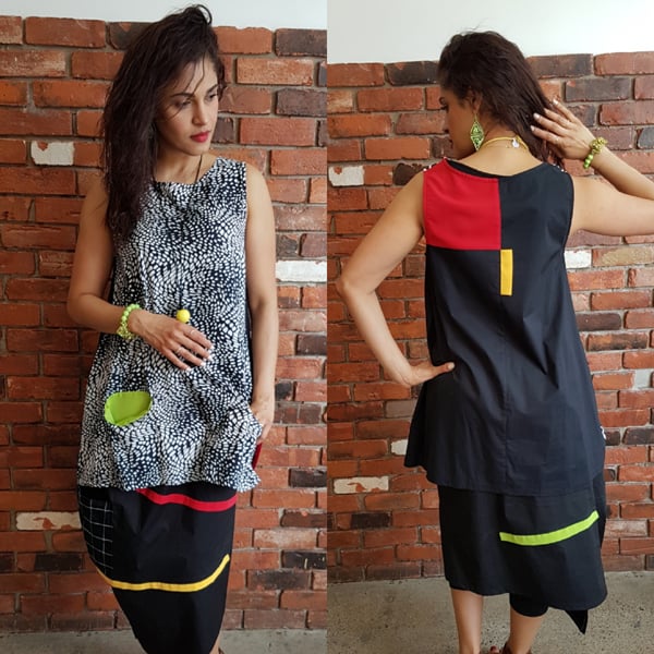 light and playful summer tunic, wear with leggings, capris , skirt or pants...50%polyester crepe and 50% cotton
