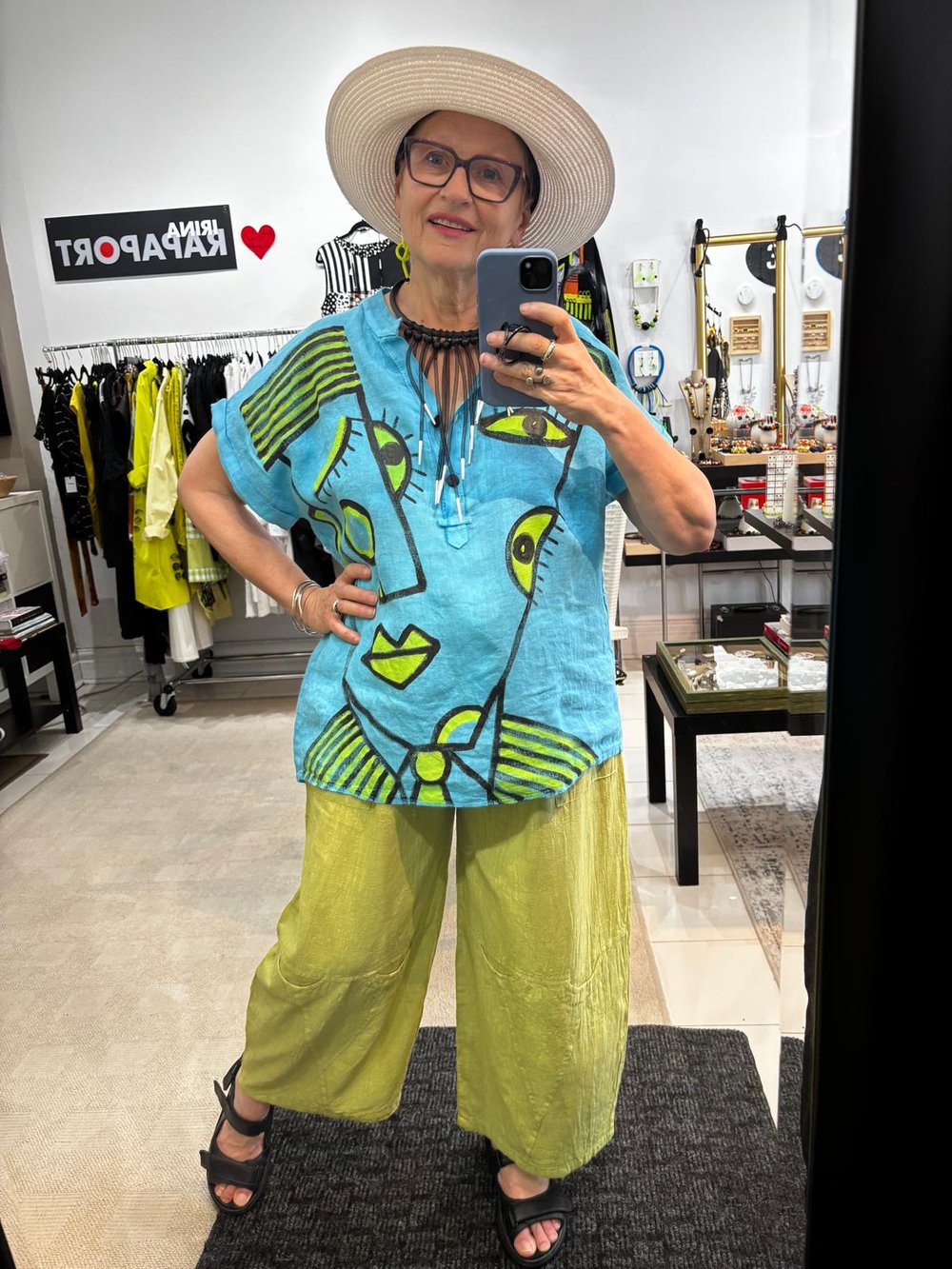 turquoise linen painted top
